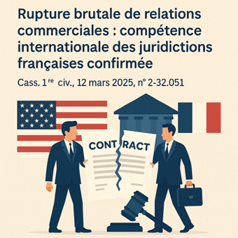À retenir : la rupture brutale d’une relation commerciale peut être jugée en France, même en l’absence de clause attributive de juridiction, si le dommage est subi en France. La qualification délictuelle s’impose, même en présence d’un lien contractuel entre les parties.
